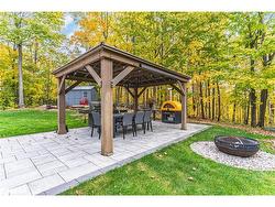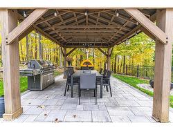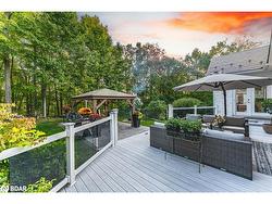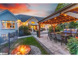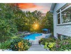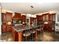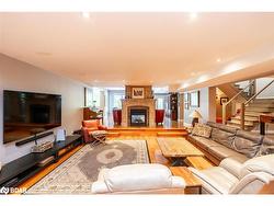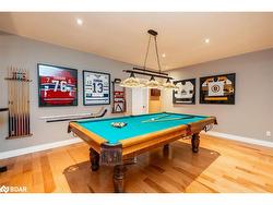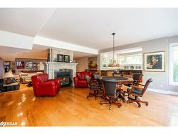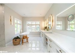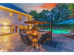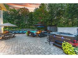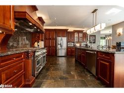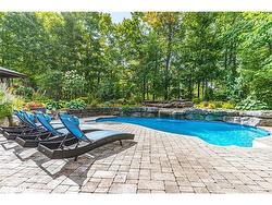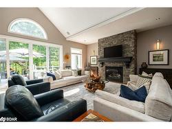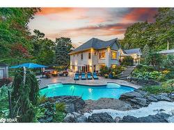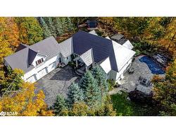 8,000 + SQ FT ESTATE ON 1.33 ACRES WITH RESORT STYLE BACKYARD, POOL, HOT TUB, TRIPLE CAR GARAGE & ADDITIONAL LIVING QUARTERS! Situated in one of Oro-Medonte’s most prestigious enclaves, this bungalow offers over 8,000 sq ft on 1.33 acres of landscaped grounds with a stately stone exterior. A long driveway provides parking for 16, complemented by a heated 3-car garage with a lift for 4 car capacity and an EV charger. Soaring ceilings, refined craftsmanship and designer finishes define the home. The chef’s kitchen impresses with solid wood cabinetry, a massive island, premium appliances, including a $24k Thermador range, while a breakfast nook captures serene forest views. A dining room with a custom-built-in cabinet is perfect for entertaining, and the living room features a stone fireplace and walkout. The primary offers 2 walk-in closets, a walkout to the pool and an ensuite with heated floors, soaker tub, and glass-walled shower. 2 additional bedrooms share a 4-piece bath, with a powder room, laundry and mudroom completing the level. The walkout basement boasts 3 additional bedrooms, including one with a semi-ensuite 4-piece bath, a 2-piece bath, a spacious den/craft room, and a rec room featuring a double-sided fireplace, wet bar, pool table, and games area, and a walkout to the backyard. Above the garage, a private living area with a separate entrance includes a kitchen, living and dining space, bedroom, laundry hookups, and independent heating/cooling. The backyard presents an inground saltwater pool with a waterfall, hot tub, pool house, gazebo, patio, and an 8-zone irrigation system. Upgrades include an aluminum roof (2018), 2 furnaces and 2 A/C units (2022), a generator (2022), Phantom Screens, powered window coverings, a Sonos sound system, wired security, high-end lighting, a striking glass and hardwood staircase and a 9’ x 14’ sliding glass wall. Minutes to golf, skiing and Lake Simcoe, less than 15 minutes to Barrie and approx. 1 hour to Pearson Airport.
