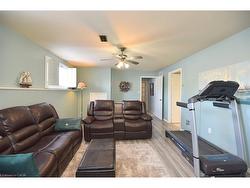 Situated in a desirable neighbourhood, this beautifully maintained raised bungalow is perfect for a family or empty nesters! The oversized 27' x 27' detached garage has an approximately 2 yr old roof, hydro and is insulated for year round use and offers a perfect spot for hobbies or a workshop. Bright and airy throughout and decorated in neutral colours, this home is in move in condition! The main floor offers a large living room and dining room with hardwood floors, a modern kitchen with an abundance of cupboards, quartz countertops, updated appliances and luxury vinyl flooring, 3 spacious bedrooms and a modern 4 piece bath. The lower level offers a cozy family room featuring a gas fireplace for chilly winter nights. A 4th bedroom, a recently completed 3 piece bathroom with a shower, laundry room and storage room complete the lower level. The fully fenced rear yard offers a patio with a gazebo, gas bbq hookup and pretty gardens. The stamped concrete driveway provides parking for 4 vehicles. Just minutes from shopping, schools, seniors' centre, parks, waterfront and restaurants!
