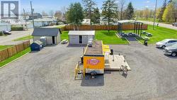 TURN-KEY SEASONAL BUSINESS WITH COMMERCIAL & RESIDENTIAL ZONING! Shaggy's Fry Shack is a profitable, established, turnkey business located just 2 minutes east of Prescott on County Road 2. Positioned along the high-visibility Seaway Corridor, the property sits on approx. 0.6 acres and is ready for immediate operation. The pristine food truck is fully equipped with: Spotless prep area with double sink, New flooring, 3 double-fat fryers, Grill top & cook top, Countertop unit with cooler, Stove & 2 refrigerators, Natural gas 100-amp service. A large gazebo offers shaded dining with 6 picnic tables and a portable restroom for patrons. The property includes three additional vinyl-sided, metal-roofed outbuildings: Building 1: Staff washroom, potato peeler, stockroom, 2 freezers, refrigerator/freezer combo. Building 2: 3 backup refrigerators + freezer. Building 3: Lawn equipment, jack wheels, misc. storage. Other features include: Septic system, Large on-site garbage bin (bi-weekly pick-up), Fenced west side. Zoned Commercial and Residential, the property offers excellent flexibility-an owner could convert one of the sheds into a living space, making this an affordable and convenient live/work setup. Operate 5-6 months of the year and enjoy a well-built, clean, and reputable business with room to grow. All major work has been completed and the setup is immaculate-just step in and carry on the vision. (id:7525)