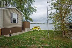 Absolutely one of the best WATERFRONT lots in the Park! Not only is it located on the sought after Peninsula of Cherry Beach, but this stunning lot is also located on a lot with unobstructed water views on both sides. This part of the peninsula only has trailers on one side of the road, providing the ultimate in waterfront enjoyment. No matter which window you look out of, you will see water. On the Southeast side there is Flakes Cove, a quiet Bay off of East Lake, offering docking, boat launch & fantastic sand beach with water toys. The Northwest side of the unit is beautiful East Lake, offering breathtaking panoramic views & glorious sunsets. This particular lot offers approximately 60ft of East Lake sandy shoreline & a tiered lot boasting natural rocks, mature trees, landscaping & firepit near the waters edge. Other outdoor features include a 35ft x 10ft rear deck overlooking the water, interlocking walkway with lighting, storage shed plus all exterior furniture & accessories. Inside this 2012 Ash model has 2 bdrms & 1 bath & can sleep up to 7 persons, including use of the pull out couch. All interior furnishings, appliances & accessories are included for a turn-key summer experience. Unit is in great condition with a newer large picture window at the end of unit, forced air propane furnace for those cooler nights, C/Air, surround sound speakers & T.V, & patio door from the living rm, leading to rear deck. Spare bdrm has dbl bunks & sleeps 3 plus the primary bdrm has built-in cabinetry & Queen bed. Affordable summer time fun in a great park with several amenities such as: heated pool, multi-purpose basketball & tennis courts, splash pad, rec centre, playground, boat docks, food truck & more. Cherry Beach is a seasonal Park located in Cherry Valley, Prince Edward County only 7 minutes to Sandbanks Prov. Park. Park is open May 1 to Oct. 31. Annual Park fees $16,015 +HST & include: land lease, taxes, grass cutting, hydro & park amenities. Staycation all summer long (id:7525)