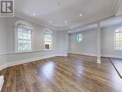 Stunning Stately Georgian Colonial. Experience timeless elegance in this beautifulVictorian-inspired estate. A True Jewel of Mill Pond, perfectly situated on one of the widest,most private lots in the area, surrounded by mature trees and lush landscaping. Approximately5,300 sq. ft. of total luxury living space, this residence seamlessly blends heritage charmwith modern sophistication. The grand main floor features 10-ft ceilings with exquisitemouldings, premium flooring, and a luxuriously updated chef's kitchen with top-of-the-linestainless steel appliances. Tall windows on all sides of the house let in bright natural light.Fresh paint throughout the house. Pot lights on every level. Every detail has been meticulouslycurated to create a warm yet refined living environment. Upstairs, the double-door primarysuite impresses with an exquisite private balcony, his & hers custom closets featuring tallmirrors and a built-in vanity, and a spa-inspired ensuite with a walk-in shower, whirlpoolbathtub, and heated floors. Smart toilets and heated flooring in several bathrooms.Custom-designed closets throughout the house. The finished basement with a separate entranceoffers a versatile space complete with laminate flooring, ideal for an extended family,recreation, or income potential. Professionally landscaped grounds and a private interlockdriveway enhance this property's curb appeal and exclusivity. The backyard features a gorgeousinterlock patio with pot lights and fans. Truly one of Mill Pond's finest offerings, a rareblend of classic architecture, luxury finishes, and modern comfort. (id:7525)