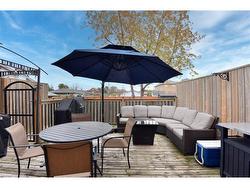 This beautiful two-storey townhome is ideally situated just steps from the lake, offering a perfect blend of peaceful, lakeside living and modern convenience. The upper level features 3 spacious bedrooms, including a main bedroom retreat complete with a 4-piece ensuite bathroom. Downstairs, the main level boasts a warm, inviting feel with durable hardwood and ceramic floors throughout, complemented by a kitchen with updated appliances, including a brand-new Fridge from 2024. The fully finished basement adds a home theatre complete with a welcoming recreation room and an HD TV Projector and screen included with the sale, perfect for entertaining. Outside, you can enjoy your private, fully fenced backyard which features a large deck for summer gatherings, BBQ included. For practicality, the home offers a single driveway and a one-car garage with convenient inside entry, and peace of mind is built in with a newer roof, replaced in 2022. Central Vacuum included. Location is key here, with easy highway access, plus you are just moments away from the Costco plaza and a lot of local amenities. Immediate possession available