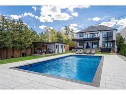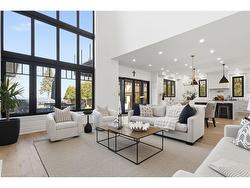 Welcome to an extraordinary custom-built waterfront residence offering luxury, craftsmanship, and breathtaking views at every turn. Designed with top-of-the-line finishes throughout, this home showcases soaring 20-foot ceilings in the great room, expansive windows that frame the water, and a seamless blend of elegance and comfort.The chef’s kitchen is a true showpiece, featuring premium appliances, refined cabinetry, a service pantry —perfect for both everyday living and entertaining. The spa-like primary suite offers a serene retreat with stunning views, a beautifully appointed ensuite, and a spacious walk-in closet. Generously sized bedrooms provide comfort and privacy for family and guests.Step outside to your own resort-style oasis, complete with an inground saltwater heated pool overlooking the shoreline. Covered outdoor spaces and meticulously landscaped grounds create the ideal setting for relaxation or gatherings in every season.An elevator provides effortless access to all three levels, enhancing convenience and accessibility. The 3-car garage, spacious mudroom, and main-floor laundry add exceptional functionality, making daily living as comfortable and practical as it is luxurious.