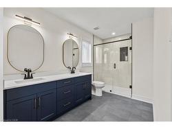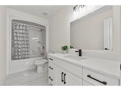 Welcome to 181 Hodgkins Ave, a nearly new 2-storey home offering style, comfort, and future potential. With 3 bedrooms, 2.5 baths, and a convenient bedroom-level laundry room, this home is designed with todays family in mind.The main floor features hardwood flooring throughout, a modern kitchen with quartz countertops, quality cabinetry, and hardware, plus open concept living and dining areas filled with natural light. Upstairs, the spacious primary suite offers a walk-in closet + ensuite designed with a double sink vanity and sleek features while two additional bedrooms provide flexibility for family, guests, or office space.The unfinished basement with rough-in for a bathroom and a separate exterior entrance presents exciting potential for an in-law suite or custom recreation area.Set in a family-friendly Thorold neighbourhood, youll enjoy quick access to parks, schools, shopping, Brock University, and Highway 406 combining community living with city convenience.Additional highlights include an owned tankless hot water on-demand system and energy-efficient construction. Move-in ready with room to grow - dont miss this beautiful home.