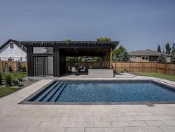 STATE OF THE ART RESIDENCE, BUILT EXCLUSIVELY BY C.KELOS HOMES LTD. With classic designer décor throughout, this 3+2 bedroom home, is truly one of a kind. Every feature of this home has been created with quality and care. High end finishes, top of the line appliances and all the extras you would expect in such a prestigious home. The Malibu rear yard features a 16 x 32 saltwater pool with outdoor kitchen and modern cabana. Your whole family will enjoy the outdoor hot tub, wood burning firepit, and enormous fenced yard. The heated, 1200 sq.ft., 3 car garage is perfect for all the toys big and small! An extensive feature sheet is available, with all the rest of the impressive details of this spectacular residence.
