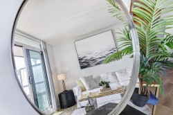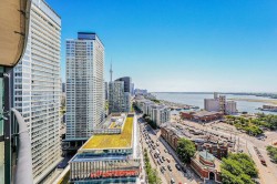 Welcome to this stunning South Lake-facing 2 Bedroom, 2 Bath Suite with unobstructed panoramic views of Toronto's lakefront. The spacious, open-concept living area and rooms are flooded with natural light, showcasing breathtaking city views. Newly renovated (hardwood floors, new appliances), high-end finishes, and thoughtful updates throughout, this modern condo exudes both comfort and style. The updated kitchen features sleek cabinet finishes, with a brand-new stove and overhead microwave. The well-appointed bedrooms and walk-in closet offer generous storage space and functional flexibility. The private balcony is the perfect spot for outdoor relaxation and sunset views overlooking the lake. The building offers a host of exceptional amenities, including a glass-enclosed pool with hot tub, an expansive outdoor BBQ deck, a community garden, party room, conference room, billiards room, and a fully equipped gym with a wraparound patio ideal for outdoor workouts or meditation. Additional features include a convenient pull-up and roundabout entry area and ample visitor parking. The suite comes with 1 parking space. Enjoy the convenience of the walkable location steps to the CNE, Lakeside Boardwalk, Billy Bishop Airport, and the TTC. You ask for it, Malibu Condos has it all. Perfect to live in or lease. Don't miss this opportunity to purchase a move-in-ready unit!