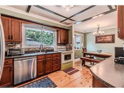 Welcome to this stunning 3+1 bedroom bungalow nestled in the charming community of Waterdown. This beautifully maintained home features a newly finished basement, complete with stylish new vinyl flooring, a spacious laundry room, a modern 3-piece bathroom, and a versatile fourth bedroom, all freshly painted to create a bright and inviting atmosphere. The main floor boasts refinished wide plank floors that add warmth and character to the living spaces, creating a cozy yet contemporary vibe. Set on an expansive 100x150 lot, this property provides a sense of seclusion surrounded by majestic evergreen trees, creating a tranquil retreat just minutes from urban conveniences. The oversized two-car garage, equipped with hydro, offers ample space for your vehicles and additional storage, while the potential for a six-car garage adds incredible value for car enthusiasts or those needing extra workspace. With its ideal blend of modern updates, including elegant new vinyl flooring in the basement, refinished wide plank floors on the main floor, and fresh paint throughout, along with serene outdoor space, this bungalow is perfect for families seeking a peaceful lifestyle in a sought-after neighborhood. Don’t miss the opportunity to make this dream home your reality!