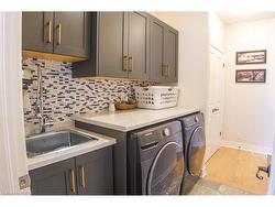 Model-home quality bungalow in awesome Waterford neighbourhood! Incredible curb appeal as you drive up to 6 Gibbons St. with it's exposed aggregate & stamped concrete driveway and steps, leading up to the stylish brick & stone home with a spacious 1450 sqft above grade. Large double garage has high-end epoxy coated floors and ample elevated storage, plus hot & cold running softened water: perfect for vehicle care! Front door enters into the tastefully decorated foyer and on to the large open concept kitchen-living-dining room. Off the foyer is easy access to the front bedroom and a 4pc bath, as well as garage access. Convenient double closet and galley-style laundry room is hidden from view and yet easily accessed. Large kitchen has ample cabinets and a large island, complimented by top quality appliances. The primary bedroom features a spacious walk-in closet and a 3 pc primary bathroom with walk-in glass shower and double vanity. Completely unspoiled well-insulated basement with bathroom rough-in and big bright windows provides a blank canvas for future expansion. Back to ground level though, check out the amazing back-yard space. A covered 10x10 porch with custom made privacy screens is a great dining area, and then step down to a composite 10x20 deck with natural gas BBQ space, massive electric awning that covers almost the entire deck, and storage, with steps down to a small grassy lawn and complete privacy fencing. To top it all off, a convenient in-ground sprinkler system. Don't miss out on this amazing property!