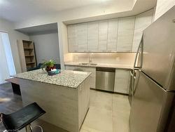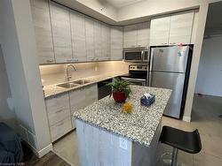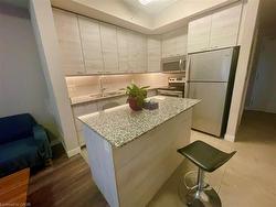 Welcome come to Sage 5. Premium 1-Bedroom + Den plus one underground parking for lease. Steps to Laurier & Waterloo University. This unit offers unparalleled convenience with walking-distance access to both the University of Waterloo and Wilfrid Laurier University, surrounded by a wealth of dining and retail amenities. An open-concept design featuring one bedroom plus a den. The flexible layout allows the den to serve as a home office or guest room. Modern kitchen equipped with granite countertops, a spacious storage island, and stainless steel appliances. A bright living room and spacious bedroom both feature sliding doors opening to an oversized balcony overlooking Hickory Street, offering great views and natural light. In-suite laundry, a sleek 4-piece bathroom, and one included underground parking space. Tastefully furnished with trendy furniture for a seamless move-in experience. A double-height study lounge on the 2nd floor, a well-equipped gym on the 7th floor, and an outdoor terrace.Available for December or January