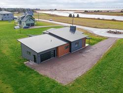 A Brand New Custom Built Modern Architectural Masterpiece Located in beautiful Serenity Shores! Just 5 minutes from the Confederation Bridge in a peaceful community with breathtaking Water and Bridge Views. There are Stunning Vaulted Ceilings in the Open Concept Great Room with a Feature Fireplace Wall that has a Luxurious Extra Large Napoleon Propane Fireplace set up for high efficiency heating. The Contemporary Style Kitchen offers a clean modern design with Quartz Countertops and excellent workspace for cooking and entertaining. This home features a split-bedroom layout with two bedrooms and a full bathroom on one side, while the primary suite is privately positioned on the opposite wing. The primary bedroom includes direct access to a concrete patio that is pre-wired for a future hot tub plus a beautiful ensuite with a separate shower and Soaker Tub. The Spacious Laundry room has a 2 Piece Bathroom and walks out to the Attached 2 Car Garage. There are 3 Heat Pumps for Efficient Heating and Cooling. Conveniently close amenities such as gas stations, coffee shops, groceries, brewery/liquor store and more. Serenity Shores is accessible year round with a government maintained road with lots of amenities for you and your guests. There is Deeded Water access to Enjoy kayaking, canoeing, or paddle boarding on the Cape Traverse river and also provides access to a spectacular secluded beach as the tide goes out connecting to Cape Traverse beach. Beside the house there is access to a hiking trail through 3 kms of beautifully manicured man made trails with custom outdoor campfire pits, outdoor kitchen, picnic tables with water views and more! An Amazing Rare Find for the most Distinct Buyers.