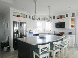 When Viewing This Property On Realtor.ca Please Click On The Multimedia or Virtual Tour Link For More Property Info. Waterfront / Beachfront Property – Muttart’s Shore, North Carleton, PEI Welcome to Driftwood Estates Subdivision, where breathtaking sunsets over the Confederation Bridge meet exceptional craftsmanship. This immaculate year-round home offers over 2,850 sq. ft. of premium finished heated space, thoughtfully designed for comfort, style, and functionality. The main dwelling features 1,675 sq. ft. of living space, highlighted by soaring 11’6” cathedral ceilings, a sleek linear propane fireplace, and a custom kitchen with quartz countertops, large island, and premium Samsung stainless “Granite” appliances. With 3 bedrooms (option for 4), 2.5 baths, built-in cabinetry, and premium vinyl plank flooring throughout, quality is evident in every detail. Energy efficiency abounds with in-floor heating, heat pumps, and triple-glazed Low-E tinted windows. Additional spaces include a heated attached garage (385 sq. ft.), a detached 2-car heated garage/shop with upper storage (616 sq. ft.), and a detached insulated sunroom/golf cart garage (180 sq. ft.). An automatic 20,000 kWh Generac propane generator adds peace of mind. Outdoors, enjoy 1,200+ sq. ft. of southwest-facing deck space with glass rails, fire pit, and pergola. A safe sandy beach with warm swimming waters, privacy fencing, underground utilities, and advanced security systems complete the package. Built in 2018 by the design-build owner, this home blends modern design, premium materials, and unmatched waterfront living. Options available: partially furnished, fully furnished, or turn-key with interior & exterior furnishings.