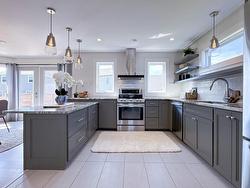 Welcome to this modern residence located in the heart of West Royalty, Charlottetown, Prince Edward Island. Thoughtfully designed and meticulously built with top-quality materials, this home delivers a five-star living experience. Boasting six bedrooms and four bathrooms, it offers generous space for large or multi-generational families, or those in need of flexible living and working areas. The open-concept kitchen is a dream for cooking enthusiasts, featuring granite countertops, a high-performance exterior-vented range hood, full ceramic tile floors and walls, piano-style windows, a double sink with an additional prep sink in the butler’s pantry, LED pot lights, premium fixtures, a filtered water system, and practical barn doors that flexibly separate spaces—ideal for study or working from home. The main floor offers a spacious formal living and dining area with large windows, high baseboards, crown moulding, 8-foot ceilings, and a heated double garage with hot and cold water access. Additional highlights include a custom propane fireplace, dual-function heat pumps for heating and cooling, an ICF (insulated concrete foundation), extra-wide hallways, walk-in closets, and four comfortable bedrooms upstairs. The luxurious Primary suite features a spa-like soaker tub and a large glass shower—your own private retreat. The raised lower level includes two additional bedrooms with large windows, perfect for guests, extended family, or a home office. Conveniently located across from a playground and within walking distance to schools, parks, trails, and shopping, this beautifully constructed home combines elegance, comfort, and practicality in one perfect package. All measurements are approximate, and should be verified if deemed necessary.