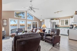 If you’ve been dreaming of lakefront living with one of the best views on the water, this year-round cabin at Sandy Beach Regional Park could be your perfect retreat. Located on the south end of the lake and just steps away from the main sandy beach and designated public swimming area, this property offers 864 sq. ft. of open-concept living designed to maximize light and views.The main living area features large windows overlooking the lake, filling the space with natural light and offering stunning sunset views. A cozy fireplace creates a warm, inviting atmosphere year-round. The layout includes two bedrooms and a four-piece bath, plus a welcoming sunroom/foyer, ideal for morning coffee or extra living space.Step out onto the spacious lakefront deck to relax, entertain, or simply take in the peaceful surroundings. The property also includes a 16’ × 24’ garage with a loft, ready to finish to your liking. Shingles were replaced on the home about six years ago.Sandy Beach is a gated community featuring a 9-hole golf course, pickleball court, playground, horseshoes, and a variety of social events to enjoy.Lakefront opportunities like this don’t come along often, your slice of paradise awaits!